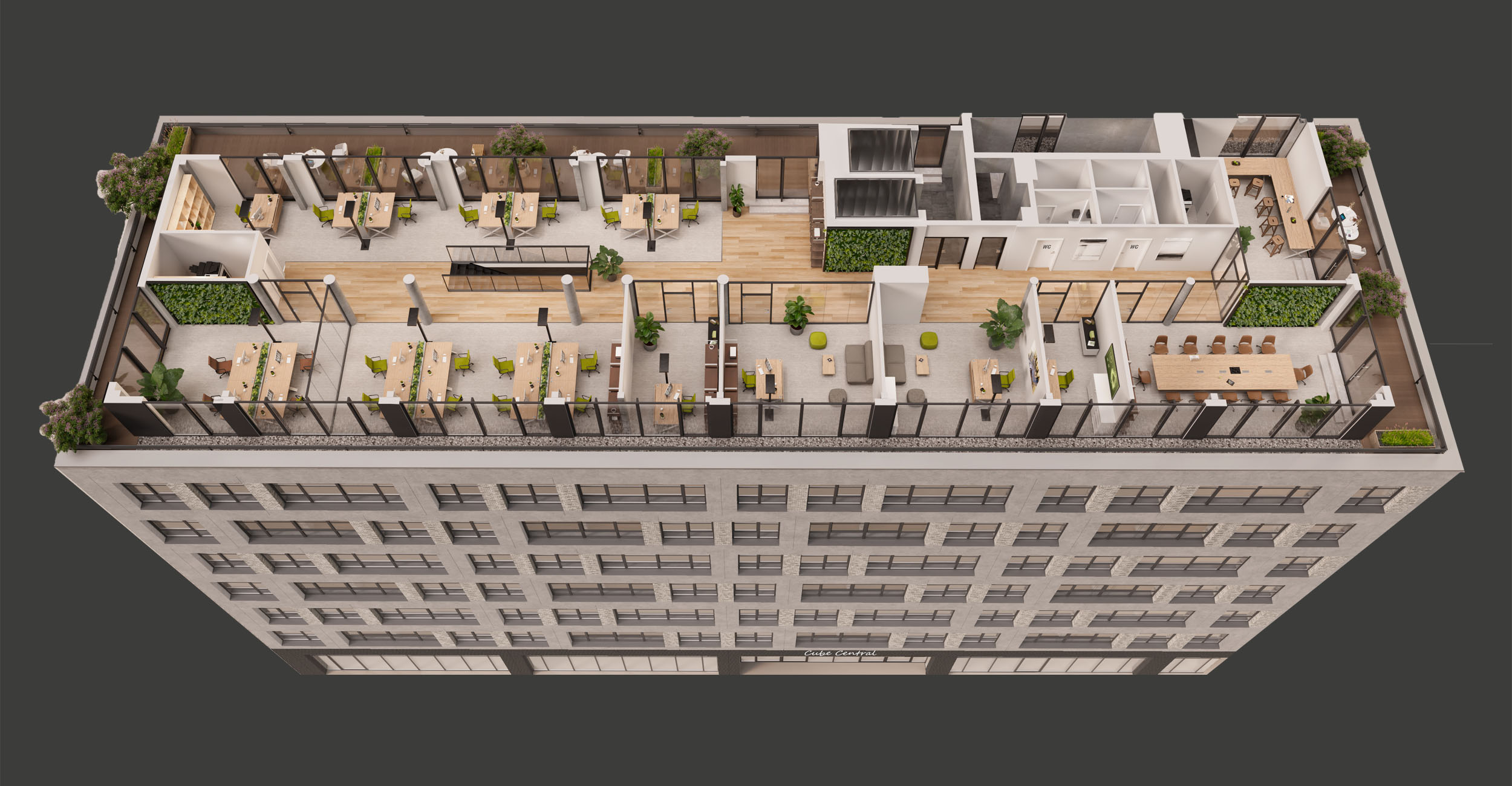 FLÄCHEN VERBINDEN: Etage 6-7 können mit einer innenliegenden Treppe zu einer Gesamtfläche von ca. 1.100 m² miteinander verbunden werden.